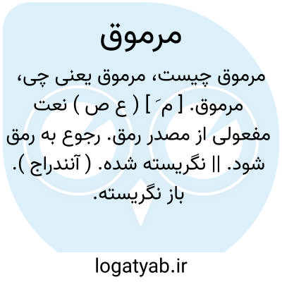 مرموق. [ م َ ] ( ع ص ) نعت مفعولی از مصدر رمق. رجوع به رمق شود. || نگریسته شده. ( آنندراج ). باز نگریسته. به ناگاه سبک نگریسته. ( ناظم الاطباء ). || مورد نظر. عالی: چون به خدمت رسید او را به اعزاز و اکرام تلقی کرد و به محل مرموق و مکان معمور مخصوص گردانید. ( ترجمه تاریخ یمینی ص 19 ). فایق پیش ایلک خان قبول تمام یافت و به مکان معمور و محل مرموق ملحوظ شد. ( ترجمه تاریخ یمینی ص 127 ). || نازک و ظریف شده. || ضعیف و کوچک گشته. ( ناظم الاطباء )