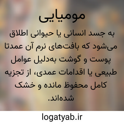 {mummy} [باستان شناسی] جسد انسان یا حیوان که بافت های آن به شیوۀ طبیعی یا مصنوعی حفظ شده باشد