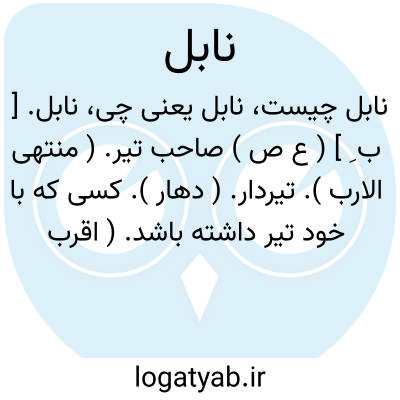 نابل. [ ب ِ ] ( ع ص ) صاحب تیر. ( منتهی الارب ). تیردار. ( دهار ). کسی که با خود تیر داشته باشد. ( اقرب الموارد ). || تیرساز. ( منتهی الارب ). تیرگر. ( دهار ). سازنده تیر. ( المنجد ). || تیرانداز. ماهر در تیراندازی. ( منتهی الارب ). ماهر در تیراندازی. ( المنجد ) ( اقرب الموارد ). || زیرک در کار. ( منتهی الارب ): هو نابل و ابن نابل؛ او زیرک و پسر زیرک است. ( منتهی الارب ) ( آنندراج ) ( اقرب الموارد ). || ثار حابلهم علی نابلهم؛ یعنی آتش بلا افروختند بر خود. ( منتهی الارب ).