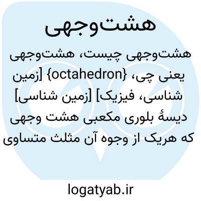 {octahedron} [زمین شناسی، فیزیک] [زمین شناسی] دیسۀ بلوری مکعبی هشت وجهی که هریک از وجوه آن مثلث متساوی الاضلاع است [فیزیک] جسمی فضایی که از دو هرم با قاعدۀ مربعی مشترک ساخته می شود