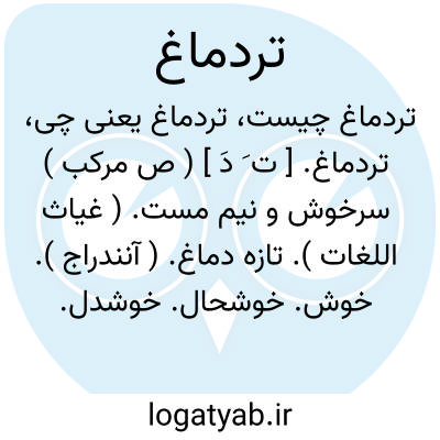 تردماغ. [ ت َ دَ ] ( ص مرکب ) سرخوش و نیم مست. ( غیاث اللغات ). تازه دماغ. ( آنندراج ). خوش. خوشحال. خوشدل. شنگول. پر از نشاط و خرمی. ( یادداشت بخط مرحوم دهخدا ).رجوع به تردماغی و تردماغ شدن و تردماغ کردن شود.