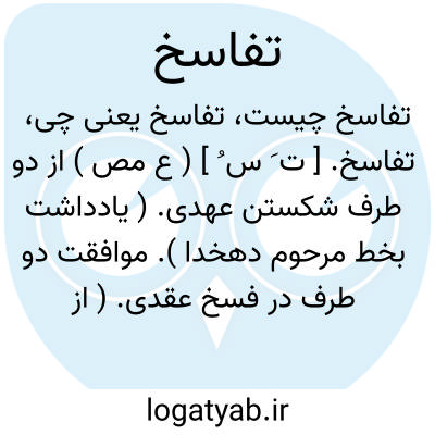 تفاسخ. [ ت َ س ُ ] ( ع مص ) از دو طرف شکستن عهدی. ( یادداشت بخط مرحوم دهخدا ). موافقت دو طرف در فسخ عقدی. ( از اقرب الموارد ). || تناقض گفتار: تفاسخ الاقاویل؛ تناقضت. ( از اقرب الموارد ).