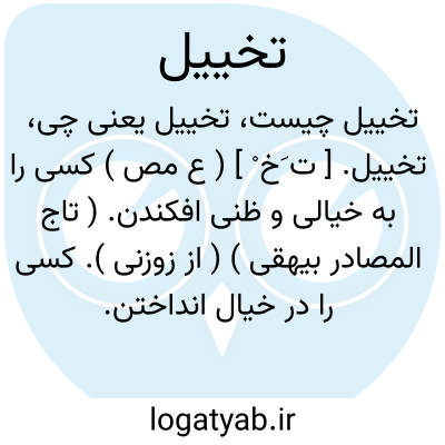 [ویکی فقه] تخییل (علم بدیع). تَخْییل، در لغت به معنی به خیال انداختن یا خیال انگیزی است و در اصطلاح ادب و بلاغت، گونه ای خاص یا هرگونه تصرفات خیالی و شاعرانه در معانی است که نتیجۀ آن برانگیختن خیال در خوانندگان و شنوندگان است. تخییل به مدد صنایع ادبی صورت می گیرد و دارای معانی خاص و عام است.