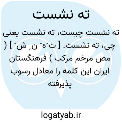 ته نشست. [ ت َه ْ ن ِ ش َ ] ( مص مرخم مرکب ) فرهنگستان ایران این کلمه را معادل رسوب پذیرفته است. رجوع به واژه های نو فرهنگستان ایران شود. رسوب مواد موجود در آبها. ( فرهنگ فارسی معین ). || ( اِ مرکب ) ماده ای که در آب رودها و مردابها و دریاچه ها و دریاها راسب میشود. || طبقه ای از زمین که نتیجه رسوب مواد محلول یا مخلوط در آب دریاها و رودهاست. || آنچه ته نشین شود. ( فرهنگ فارسی معین ). رجوع به ماده بعد شود.