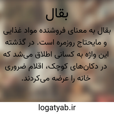 کلمه «بقال» به معنای فروشنده مواد غذایی و مایحتاج روزمره است. در گذشته این واژه به کسانی اطلاق میشد که در دکانهای کوچک، کالاهایی مانند برنج، حبوبات، روغن، ادویهها و دیگر اقلام ضروری خانه را عرضه میکردند. این حرفه از قدیمیترین مشاغل در جوامع سنتی به شمار میآید.