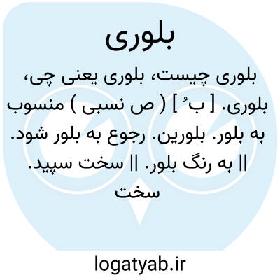 بلوری. [ ب ُ ] ( ص نسبی ) منسوب به بلور. بلورین. رجوع به بلور شود. || به رنگ بلور. || سخت سپید. سخت پاکیزه و بی آمیغ: یخ بلوری. ( یادداشت مرحوم دهخدا ).