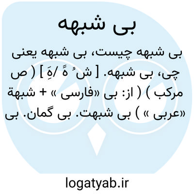 بی شبهه. [ ش ُ هََ /هَِ ] ( ص مرکب ) ( از: بی «فارسی » + شبهة «عربی » ) بی شبهت. بی گمان. بی شک. بلاشک. بلاشبهه. ( یادداشت مؤلف ). بی شک. بی اشتباه. ( ناظم الاطباء ). رجوع به شبهه شود.