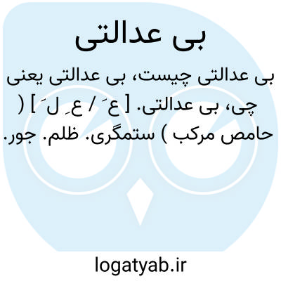 بی عدالتی. [ ع َ / ع ِ ل َ ] ( حامص مرکب ) ستمگری. ظلم. جور.