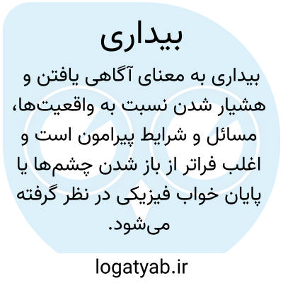 ۱ - عمل بیدار بودن یقظه مقابل خواب. ۲ - هوشیاری آگاهی.