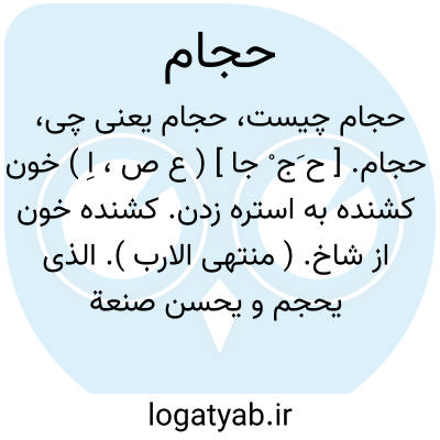 حجام. [ ح َج ْ جا ] ( ع ص، اِ ) خون کشنده به استره زدن. کشنده خون از شاخ. ( منتهی الارب ). الذی یحجم و یحسن صنعة الحجم. ( سمعانی ). کشنده خون با شاخ یا شیشه از تن. حاجم. حجامت گر. خون گیر. خون ستان. حجامت کننده. حجامت چی. خون کشنده. مصاص.