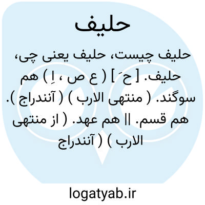 (صفت ) ۱ - هم عهد هم سوگند. ۲ - یار دستیار. جمع: حلفائ.