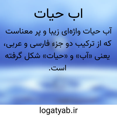 معنی: در افسانه ها آب زندگانی که عمر جاویدان می دهد، آب ( فارسی ) + حیات ( عربی ) در افسانه ها آب زندگانی که عمر جاویدان می دهد