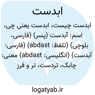 اسم: آبدست (پسر) (فارسی، بلوچی) (تلفظ: abdast) (فارسی: آبدست) (انگلیسی: abdast)