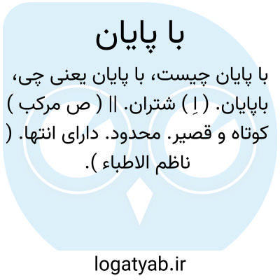 باپایان. ( اِ ) شتران. || ( ص مرکب ) کوتاه و قصیر. محدود. دارای انتها. ( ناظم الاطباء ).