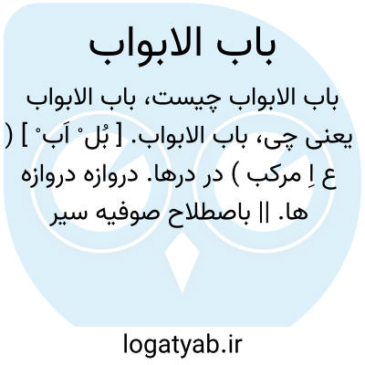 ( اسم ) ۱ - دردها تدروازه دروازه ها ۲ - سیررجوعی اول مقامات توبه است که سالک از هر چه مانع وصول است - از دنیا و عقبی - اعراض کند و روی توجه بجانب حق آرد. توبه را باب الواب نامند زیرا توبت و انابت نخستین دریست از درهای که وسیله دخول بندگان درحضرت قرب بارگاه حضرت رب العزه میباشد.