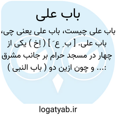 باب علی. [ ب ِ ع َ ] ( اِخ ) یکی از چهار در مسجد حرام بر جانب مشرق:... و چون ازین دو ( باب النبی ) بگذری هم بر این دیوار مشرقی باب علی علیه السلام است و این آن در است که امیرالمؤمنین علی علیه السلام در مسجد رفتی به نماز و این در به سه طاقست. ( سفرنامه ناصرخسرو چ برلین صص 104 - 105 ).