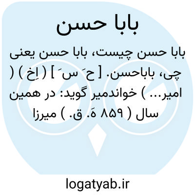 باباحسن. [ ح َ س َ ] ( اِخ ) مقبره وی به تبریز از مقابر و مزارات متبرکه باشد. ( نزهةالقلوب چ لیدن مقاله سوم ص 78 ).