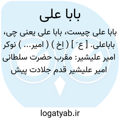 باباعلی. [ ع َ ] ( اِخ ) ( امیر... ) نوکر امیر علیشیر: مقرب حضرت سلطانی امیر علیشیر قدم جلادت پیش نهاد و امیر باباعلی را که در آن زمان نوکرش بود بدرون خرگاه فرستاد... ( حبیب السیر چ خیام ج 4 ص 150 )... در آن اثنا بعضی از منهیان به پایه سریر اعلی رسیده بعرض رسانیدند که آمدن محمدحسین میرزا از روی اخلاص و عبودیت نیست بلکه به خیال غدر و بداندیشی بدین جانب توجه می نماید. بنا بر آن خاقان منصور امیرمبارزالدین محمدولی بیک و امیرعمربیک و امیر باباعلی را با ده هزار سوار باستقبال شاهزاده روانه گردانید... ( حبیب السیر چ خیام ج 4 ص 217 )...بعد از اداء نماز جمعه بموجب فرموده عمل نموده در آخر همان روز بحسب اتفاق امیر مبارزالدین محمد ولی بیک و امیر عمربیک و امیر باباعلی از جانب استراباد رسیدند... ( حبیب السیر چ خیام ج 4 صص 221 - 222 )... و ضبط میسره را بعهده سید عبداﷲ میرزا و امیر باباعلی گذاشت [ بدیعالزمان میرزا ]. ( ایضاً ص 248 ).