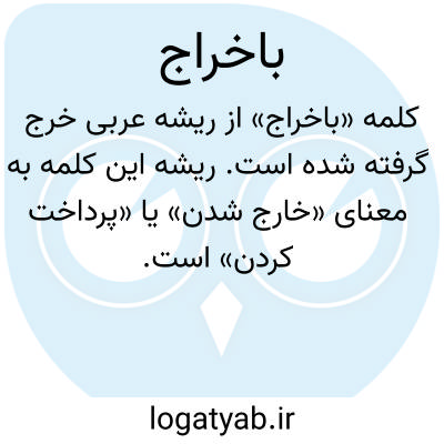کلمه «باخراج» از ریشه عربی خَرَجَ گرفته شده است. ریشه این کلمه به معنای «خارج شدن» یا «پرداخت کردن» است. وقتی حرف با به آن اضافه می‌شود، معنای ترکیبی به دست می‌آید که معمولاً به «با پرداخت» یا «با صرف کردن» اشاره دارد.