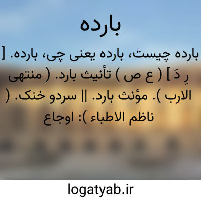 بارده. [ رِ دَ ] ( ع ص ) تأنیث بارد. ( منتهی الارب ). مؤنث بارد. || سردو خنک. ( ناظم الاطباء ): اوجاع بارده. امراض بارده.