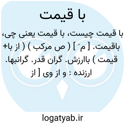 باقیمت. [ م َ ] ( ص مرکب ) ( از با+ قیمت ) باارزش. گران قدر. گرانبها. ارزنده: و از وی [ از پارس ] بساطها و فرشها و زیلوهاو گلیمهای باقیمت خیزد. ( حدود العالم ):