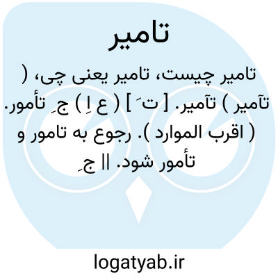 ( تآمیر ) تآمیر. [ ت َ ] ( ع اِ ) ج ِ تأمور. ( اقرب الموارد ). رجوع به تامور و تأمور شود. || ج ِ تؤمور.( منتهی الارب ) ( ناظم الاطباء ). رجوع به تؤمور شود.