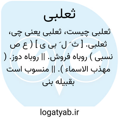 ثعلبی. [ ث َ ل َ بی ی ] ( ع ص نسبی ) روباه فروش. || روباه دوز. ( مهذب الاسماء ). || منسوب است بقبیله بنی ثعلبة و صنعت پوستین روباه. ( سمعانی ).