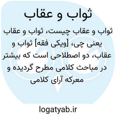 [ویکی شیعه] ثَواب و عِقاب، دو اصطلاح قرآنی برای اعمال نیک و بد انسان است. ثواب یعنی پاداش و جزای خیری که از سوی پروردگار به بندگان مؤمن در برابر ایمان و کارهای نیک داده می شود و عقاب سزا و جزای ناخوشایندی است که به بندگان کافر یا عاصی، در عوض کفر یا کارهای ناروا و خلاف شرع می رسد.
