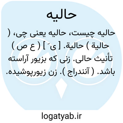 ( حالیة ) حالیة. [ ی َ ] ( ع ص ) تأنیث حالی. زنی که بزیور آراسته باشد. ( آنندراج ). زن زیورپوشیده. صاحب پیرایه.