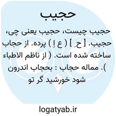 حجیب. [ ح ِ ] ( ع اِ ) پرده. از حجاب ساخته شده است. ( از ناظم الاطباء ). مماله حجاب: