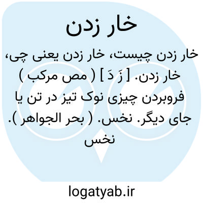 خار زدن. [ زَ دَ ] ( مص مرکب ) فروبردن چیزی نوک تیز در تن یا جای دیگر. نخس. ( بحر الجواهر ). نخس معنیش قریب بمعنی دَخز است جز آنکه حالتی است که در آن چوب و انگشت بکار رود. ( بحر الجواهر ).