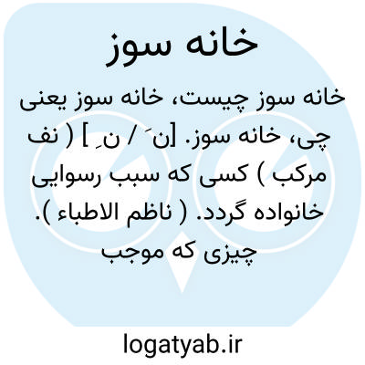 خانه سوز. [ن َ / ن ِ ] ( نف مرکب ) کسی که سبب رسوایی خانواده گردد. ( ناظم الاطباء ). چیزی که موجب آتش زدن و بر باد دادن خانواده شود. سوزنده خانه و خانمان: