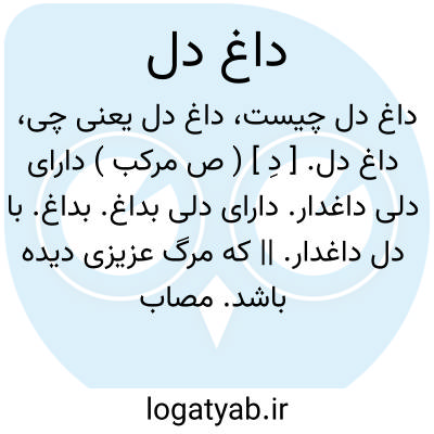 داغ دل. [ دِ ] ( ص مرکب ) دارای دلی داغدار. دارای دلی بداغ. بداغ. با دل داغدار. || که مرگ عزیزی دیده باشد. مصاب بمرگ فرزند یا کسان نزدیک. دل شکسته. مصیبت عظیم دیده را گویند عموماً و مصیبت فرزند را خصوصاً. ( لغت محلی شوشتر نسخه خطی ):