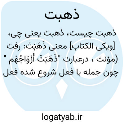 [ویکی الکتاب] معنی ذَهَبَتْ: رفت (مؤنث، درعبارت "ذَهَبَتْ أَزْوَاجُهُم " چون جمله با فعل شروع شده فعل آن رابا این که معنی جمع می دهد مفرد می آوریم)