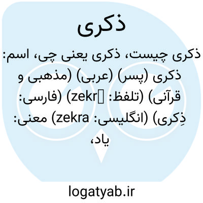 اسم: ذکری (پسر) (عربی) (مذهبی و قرآنی) (تلفظ: zekrā) (فارسی: ذِکری) (انگلیسی: zekra)