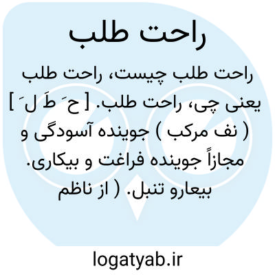 راحت طلب. [ ح َ طَ ل َ ] ( نف مرکب ) جوینده آسودگی و مجازاً جوینده فراغت و بیکاری. بیعارو تنبل. ( از ناظم الاطباء ). آسایش خواه. ( آنندراج ).