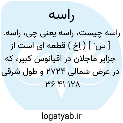 راسه. [ س َ ] ( اِخ ) قطعه ای است از جزایر ماجلان در اقیانوس کبیر، که در عرض شمالی 27ْ24 و طول شرقی 36 41 ْ128 واقع شده است. مساحت آن یک کیلومترمربع میباشد. ( از قاموس الاعلام ترکی ج 3 ).