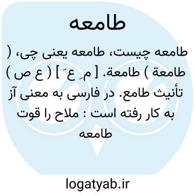 ( طامعة ) طامعة. [ م ِ ع َ ] ( ع ص ) تأنیث طامع. در فارسی به معنی آز به کار رفته است: ملاح را قوت طامعه بحرکت درآمد. ( گلستان ).