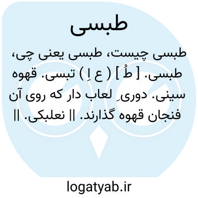 طبسی. [ طُ ] ( ع اِ ) تبسی. قهوه سینی. دوری ِ لعاب دار که روی آن فنجان قهوه گذارند. || نعلبکی. || بشقاب. ج، طباسی.
