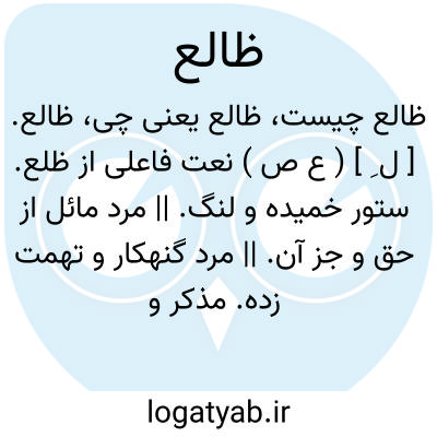 ظالع. [ ل ِ ] ( ع ص ) نعت فاعلی از ظلع. ستور خمیده و لنگ. || مرد مائل از حق و جز آن. || مرد گنهکار و تهمت زده. مذکر و مؤنث در وی یکسان است. || سگ لنگ. || سگی که در شب خواب نکند. || سگ ماده آزمند نر که سگان درپی او افتاده و نگذارند که خواب کند. سگ گشنخواه.