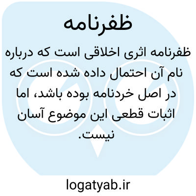 [ویکی فقه] ظفرنامه ( ابن سینا). «ظفرنامه» کتابی است اخلاقی که در باره اسم آن احتمال داده شده که خردنامه باشد، لکن اثبات آن راحت نمی باشد. تالیف این کتاب، به زمان انوشیروان برمی گردد.