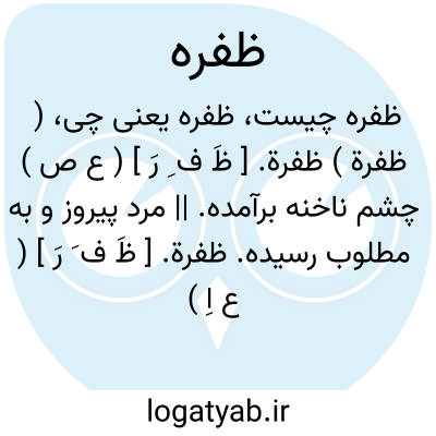 ( ظفرة ) ظفرة. [ ظَ ف ِ رَ ] ( ع ص ) چشم ناخنه برآمده. || مرد پیروز و به مطلوب رسیده.