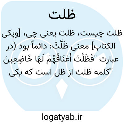 [ویکی الکتاب] معنی ظَلَّتْ: دائماً بود (در عبارت "فَظَلَّتْ أَعْنَاقُهُمْ لَهَا خَاضِعِینَ "کلمه ظلت از ظل است که یکی از افعال ناقصه بوده که اسم و خبر میگیرد و در اینجا اسمش کلمه اعناقهم و خبرش خاضعین میباشد یعنی گردنهایشان دائماً خاضع می شود یا سربه زیر می شوند)