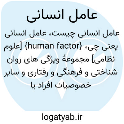 {human factor} [علوم نظامی] مجموعۀ ویژگی های روان شناختی و فرهنگی و رفتاری و سایر خصوصیات افراد یا گروه های اجتماعی که بر تصمیم گیری ها و انتشار اطلاعات و تفسیر داده ها در جامعه اثر می گذارد