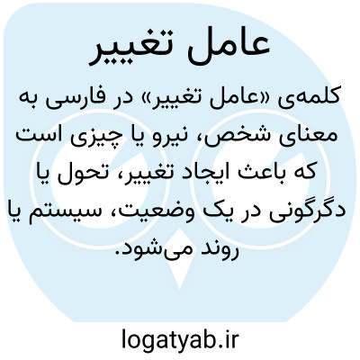 کلمه‌ی «عامل تغییر» در فارسی به معنای شخص، نیرو یا چیزی است که باعث ایجاد تغییر، تحول یا دگرگونی در یک وضعیت، سیستم یا روند می‌شود. این واژه به کسی یا چیزی اشاره دارد که نقشی فعال در ایجاد تحولات دارد و سبب می‌شود وضعیت قبلی به حالت جدیدی تبدیل شود. در علوم اجتماعی، سیاسی و اقتصادی، این واژه برای افرادی یا نیروهایی به کار می‌رود که موجب تحول در جامعه، سازمان یا بازار می‌شوند. معنای ضمنی این کلمه با واژه‌هایی مثل محرک، دگرگون‌کننده، نوآور و تحول‌آفرین هم‌معنی است. این عبارت معمولاً بار معنایی مثبت دارد و نشان‌دهنده نقش فعال و مؤثر در روند پیشرفت یا تحول است. در نهایت، «عامل تغییر» مفهومی است که تأکید بر نقش مؤثر و پویا در ایجاد دگرگونی‌ها دارد و اهمیت آن در زندگی فردی، سازمانی و اجتماعی قابل توجه است.