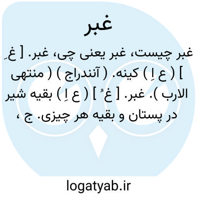 غبر. [ غ ُ ] ( ع اِ ) بقیه شیر در پستان و بقیه هر چیزی. ج، اغبار. ( منتهی الارب ) ( آنندراج ).