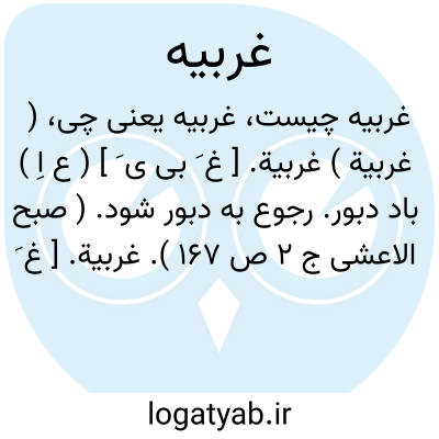 ( غربیة ) غربیة. [ غ َ بی ی َ ] ( ع اِ ) باد دبور. رجوع به دبور شود. ( صبح الاعشی ج 2 ص 167 ).