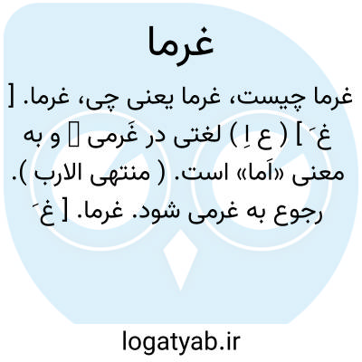 غرما. [ غ َ ] ( ع اِ ) لغتی در غَرمی ̍ و به معنی «اَما» است. ( منتهی الارب ). رجوع به غرمی شود.