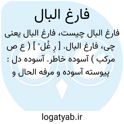 فارغ البال. [ رِ غُل ْ ] ( ع ص مرکب ) آسوده خاطر. آسوده دل: پیوسته آسوده و مرفه الحال و آزاد و فارغ البال. ( ترجمه محاسن اصفهان ص 132 ). تا ایشان مرفه الحال و فارغ البال در این طرف مقیم شدند. ( ترجمه تاریخ قم ص 5 ). و رجوع به فارغ بال شود.