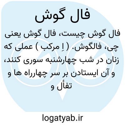 فالگوش. ( اِ مرکب ) عملی که زنان در شب چهارشنبه سوری کنند، و آن ایستادن بر سر چهارراه ها و تفأل و تطیر به گفتار عابرین باشد. ( یادداشت بخط مؤلف ). به آواز مردم گوش گذاشته از سخن آنها فال گرفتن. ( آنندراج ). رجوع به فال و فال کلند شود.